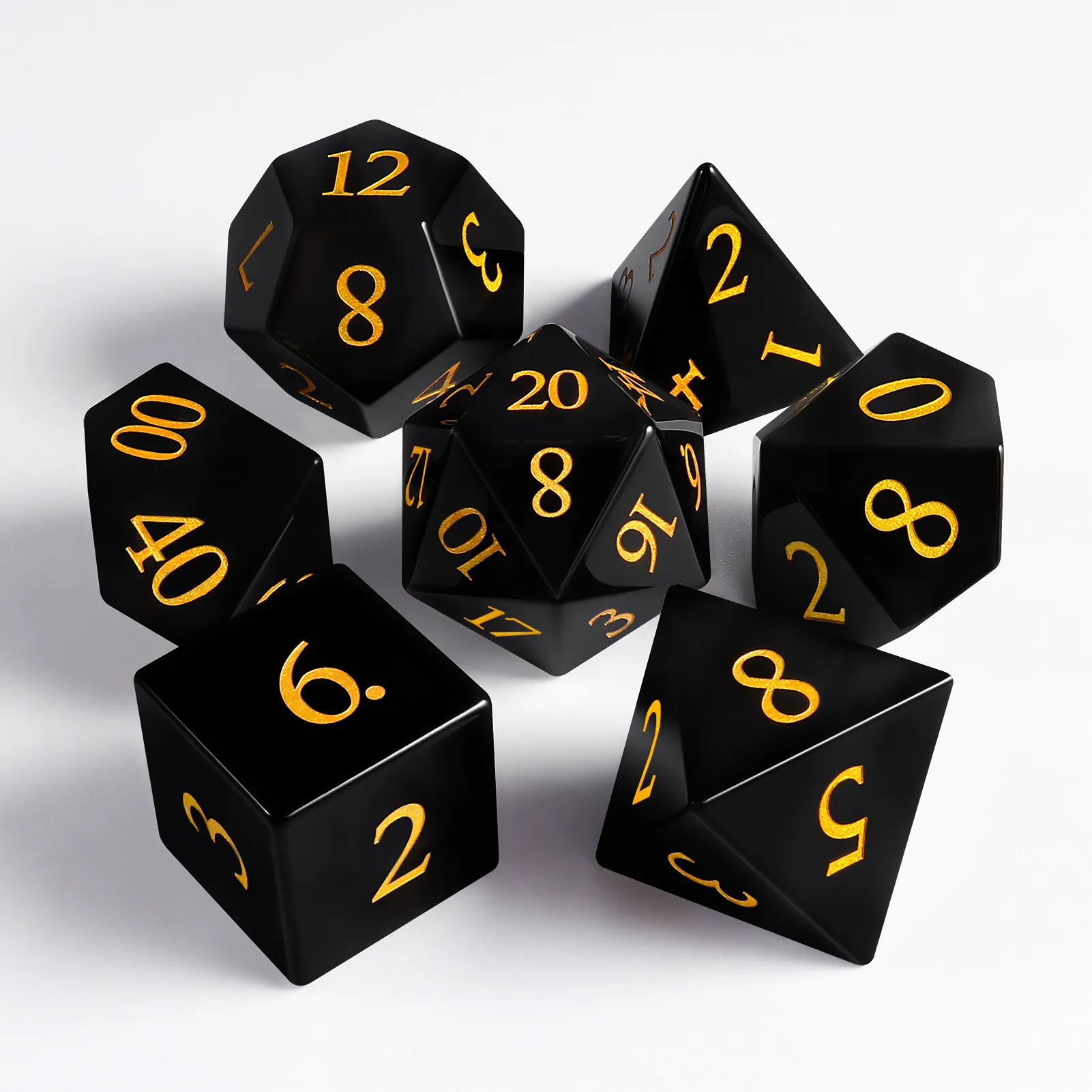 Black Gemstone Obsidian DND Dice Set Black Gemstone Obsidian DND Dice Set
