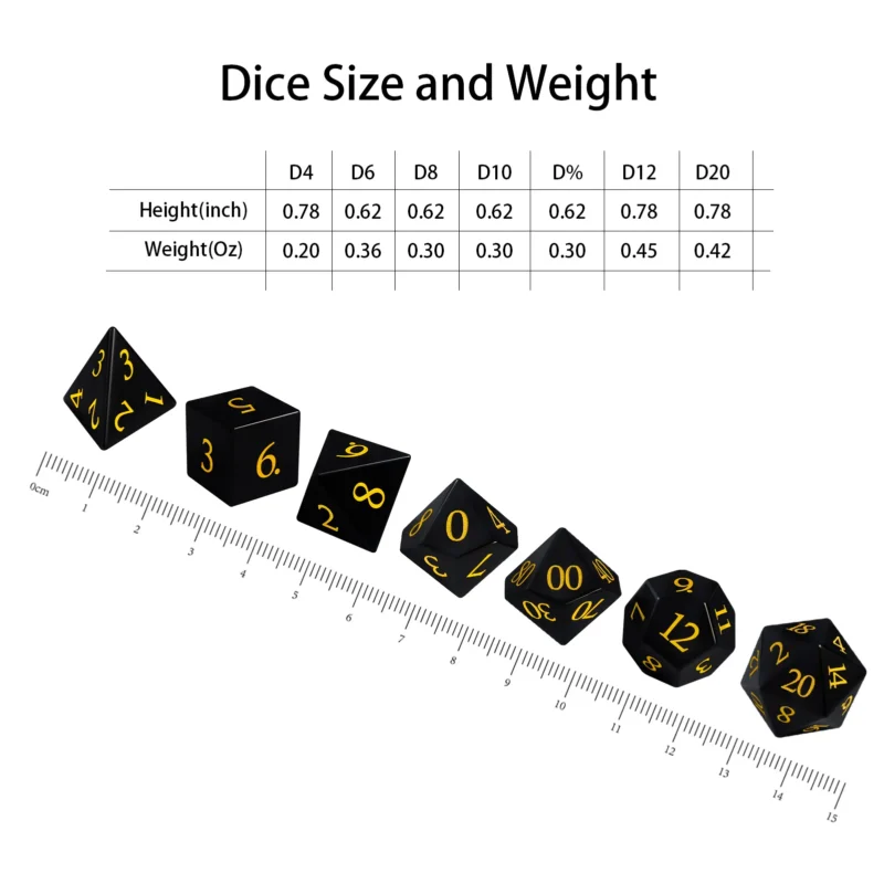 Black Gemstone obsidian DND dice set with smooth edges, balanced rolls, and lasting durability—ideal for gameplay, collecting, or gifting.