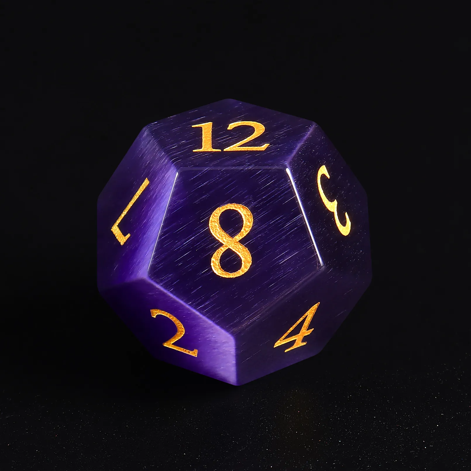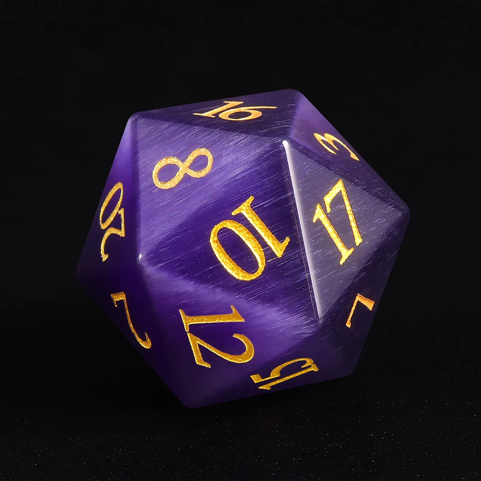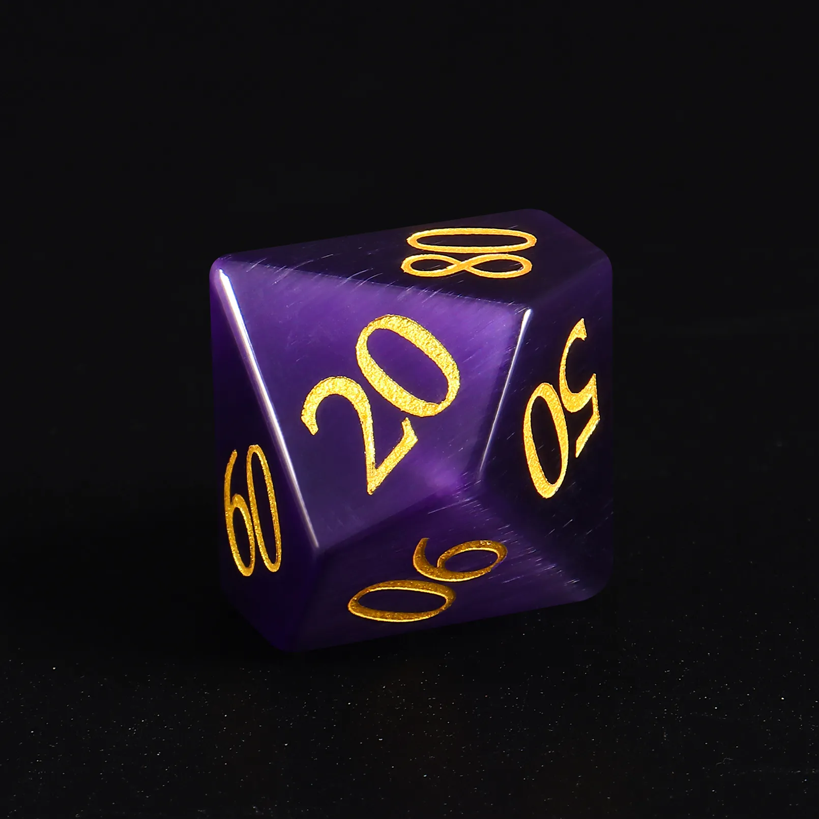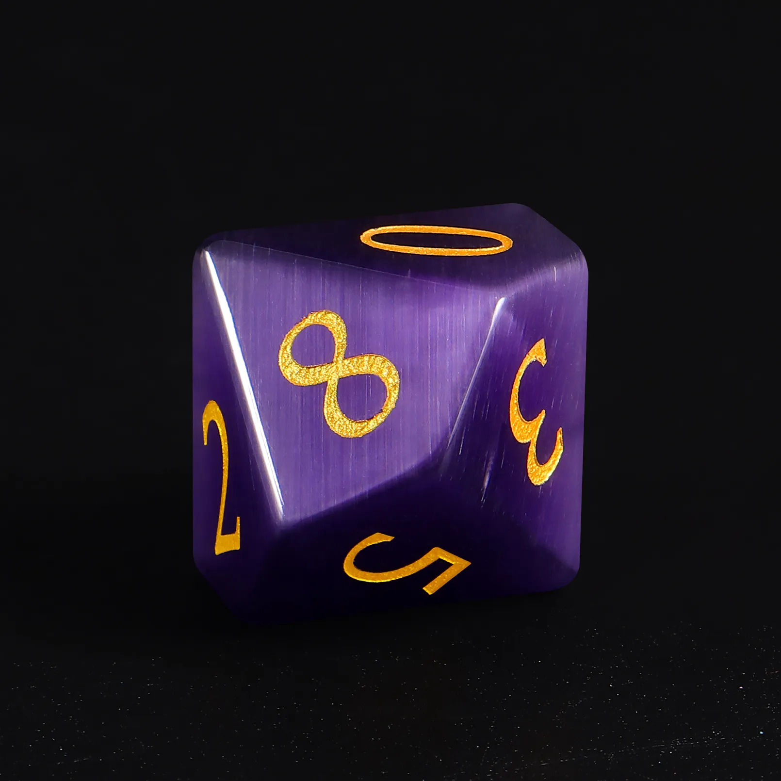 Purple Cat Eye’s DND dice set, shimmering, polished, balanced—perfect for RPGs and collectors.
